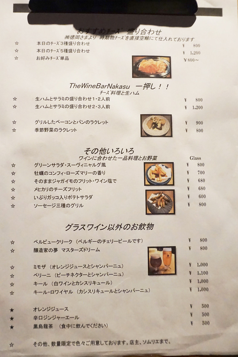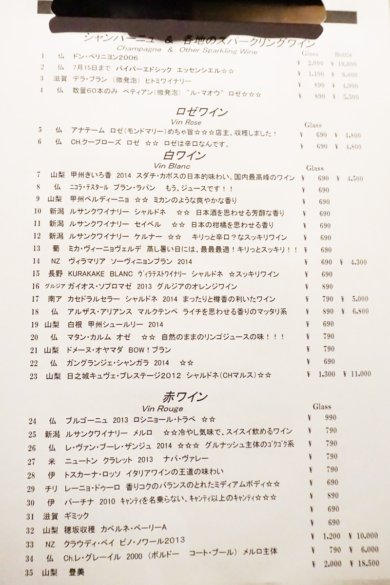 オモテのメニューには、リーズナブルなグラスワインが多いですが、