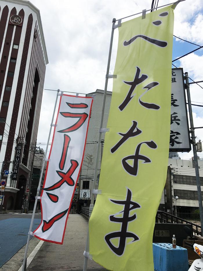 色々な長浜ラーメンのお店がありますが、繁華街からは少し離れたところにあります。
