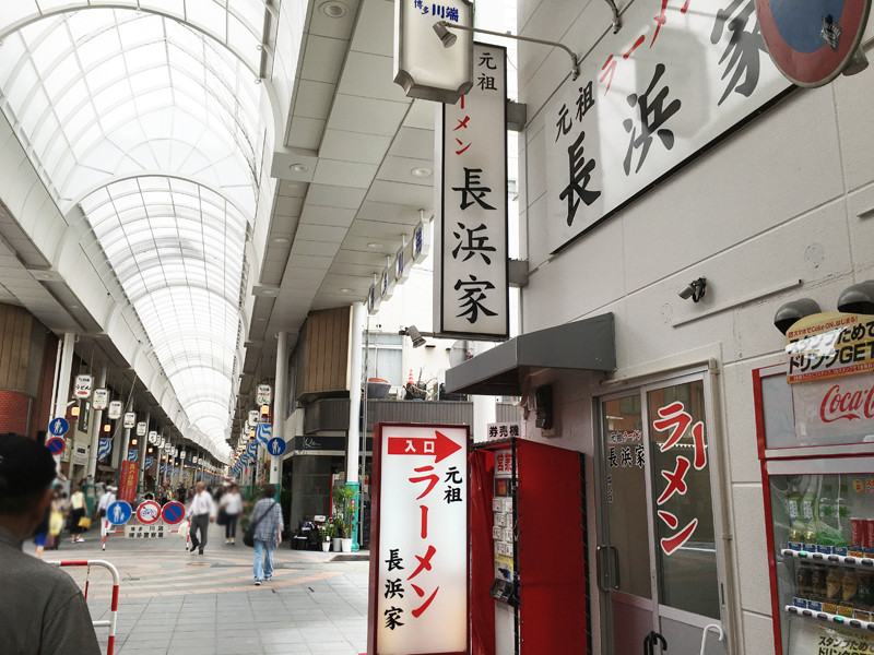 川端商店街の真ん中あたりにある『元祖ラーメン長浜家』。