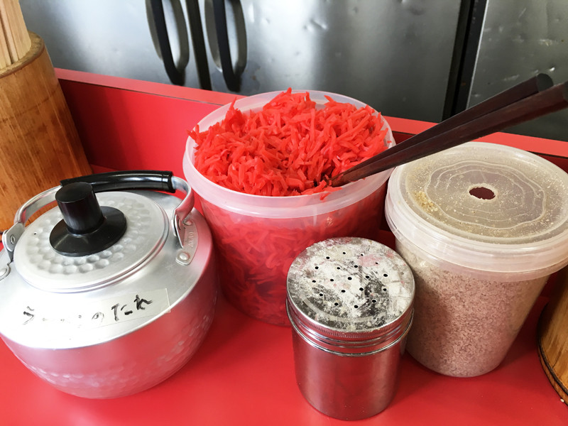 スープがシャバシャバだからこそ、卓上のコショウ・ゴマ・紅しょう・ラーメンダレが大活躍します。