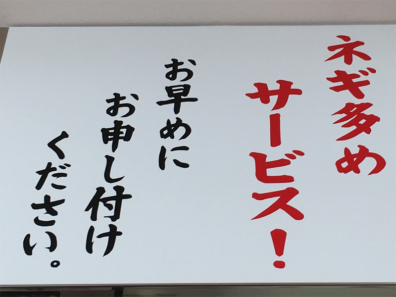 スタッフのお兄さんに食券を渡し、麺の茹で加減(ヤワ・カタ・普通・ナマなど)とネギ多めをリクエスト。