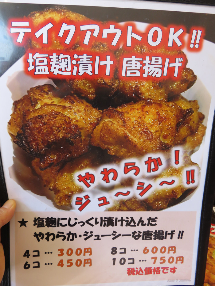 塩麹漬け唐揚げ4個300円。