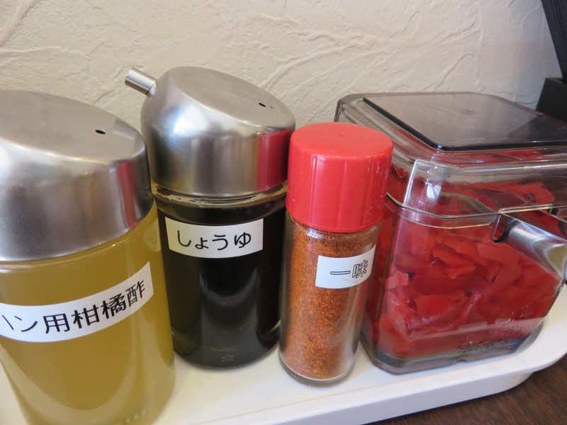 チャーハンもマーボーもあまり辛くなかったので、卓上の一味で追い唐辛子をしました。