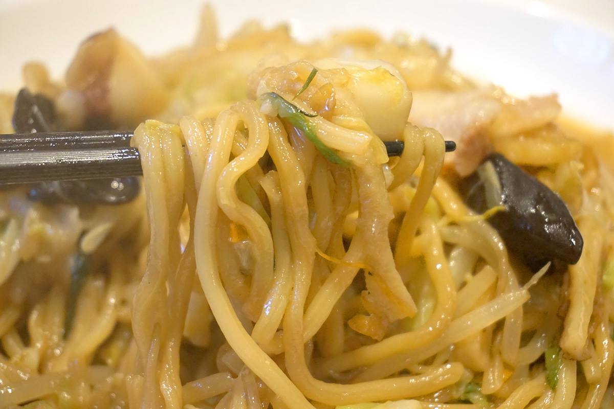香ばしく焼き付けたチャンポン麺に具沢山のとろみ餡をかけたもの。