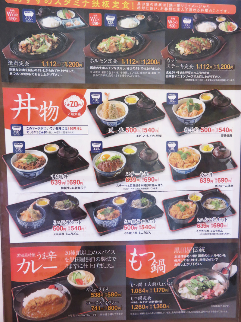 スタミナ鉄板定食・丼もの・カレー・もつ鍋のメニュー。