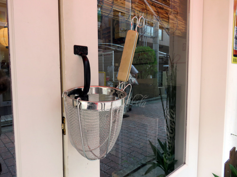 ドアの取っ手に『てぼ(麺ざる)』がくっついてました(笑)。