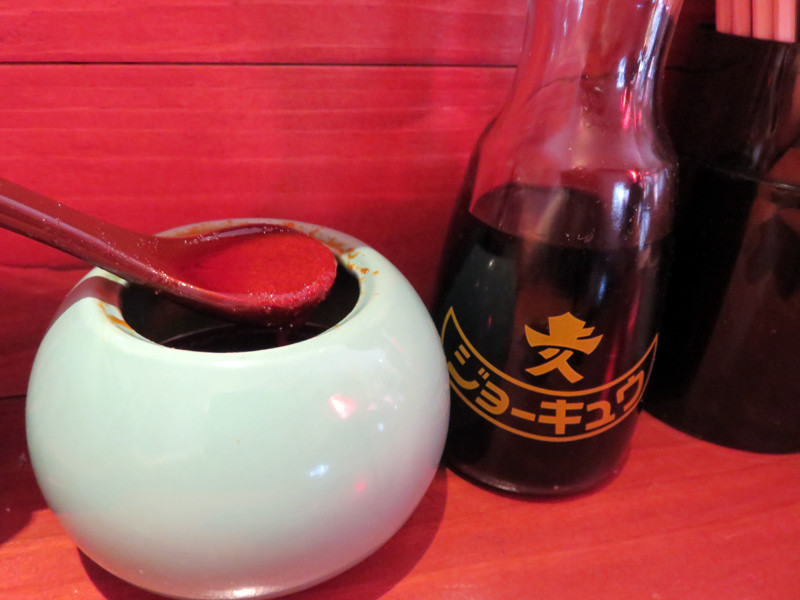 なので、卓上の辛味ダレを追加して、食べます。