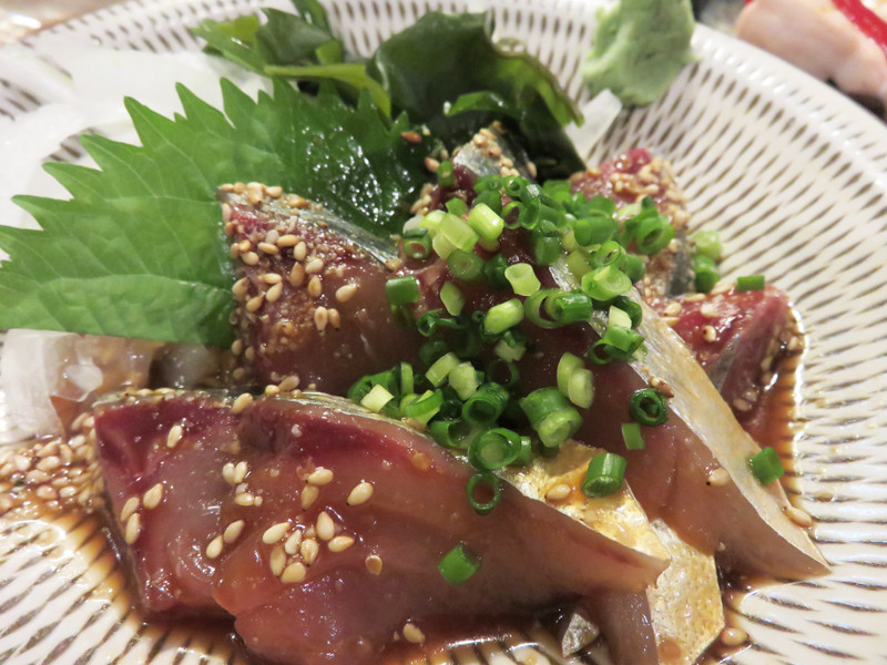 お店によってスタイルが違いますが、こちらはサバを漬けにしてゴマを振ったもの。