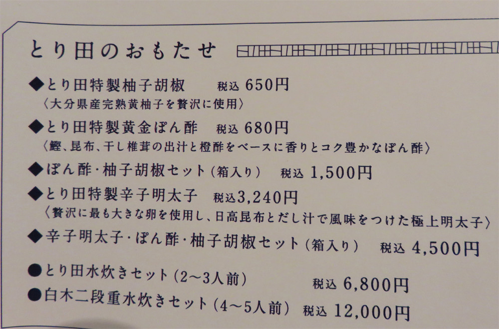 とり田 博多本店 (水炊き / 中洲川端駅、呉服町駅、天神駅)