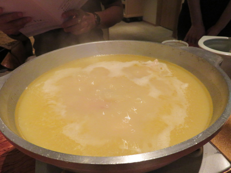 そして、程良くして水炊き鍋がセットされました。