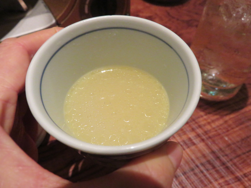 まずは、スープをお猪口で味わいます。