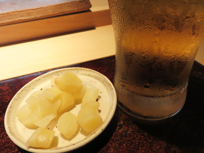 最初に出てきたのは、葉しょうが(谷中生姜)の酢漬け、