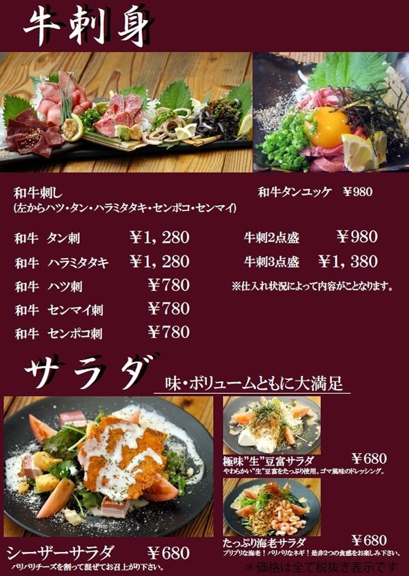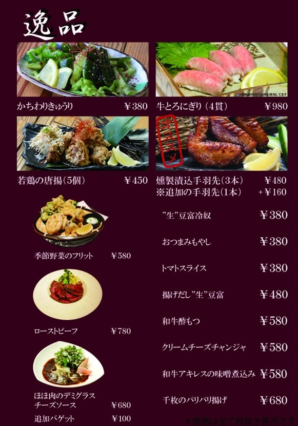 以下、メニューです。
