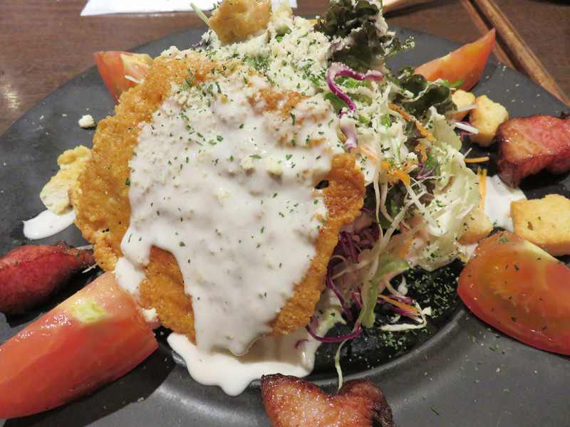 チーズのカリカリ焼きがトッピングされて、テンション上がる盛り付け。