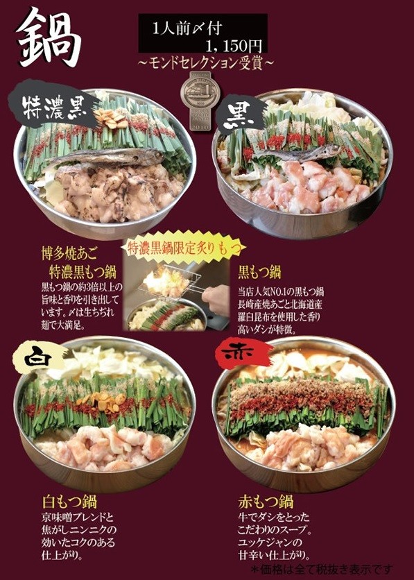 モンドセレクションって、お菓子だけかと思ってたらモツ鍋にもあるんですね〜(笑)。