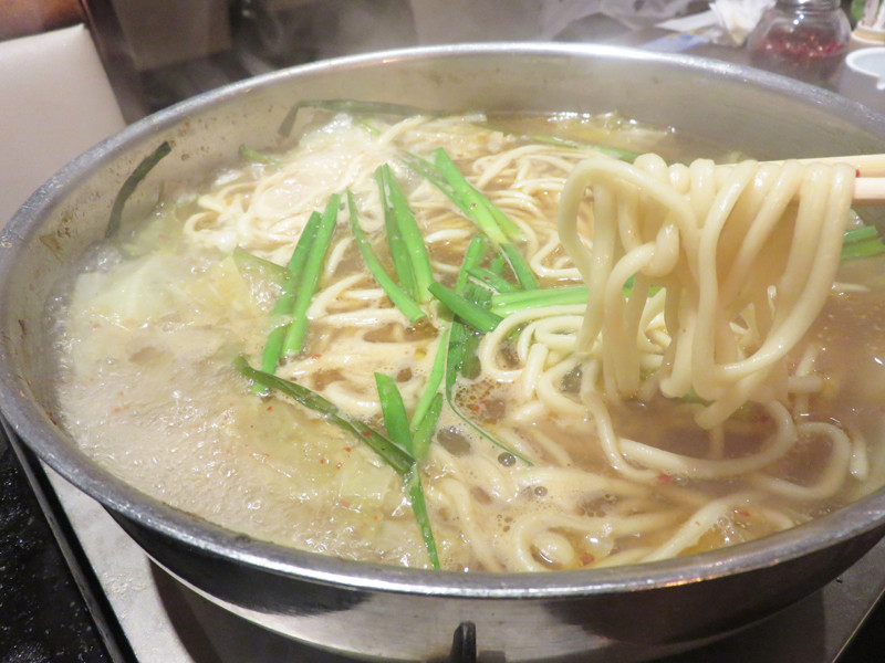 モツ鍋のシメは通常チャンポン麺ですが、