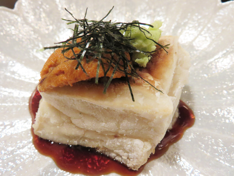 焼き胡麻豆腐のウニのせ。