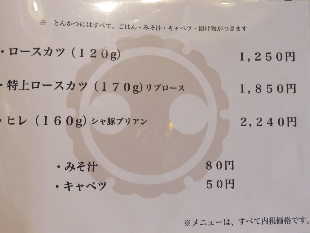 友人が頼んだのも、デフォルトのロースカツ(120g)ではなく、特上ロースカツ(170g)リブロース。
