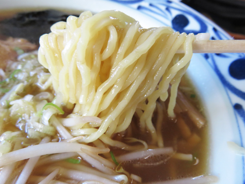 冷たいのでやや硬めに感じられる麺、シャキシャキのモヤシ、柔らかい繊維のメンマを