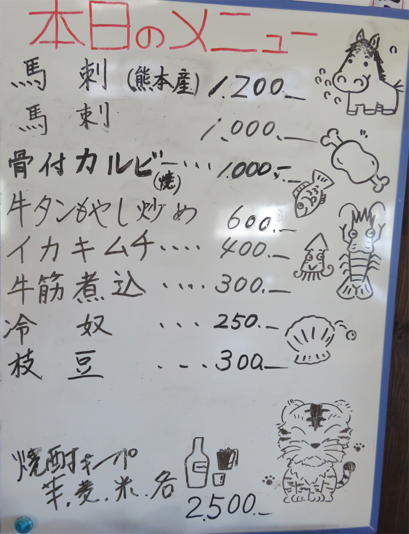 焼肉・ホルモンの他に、馬刺もあるそうです。