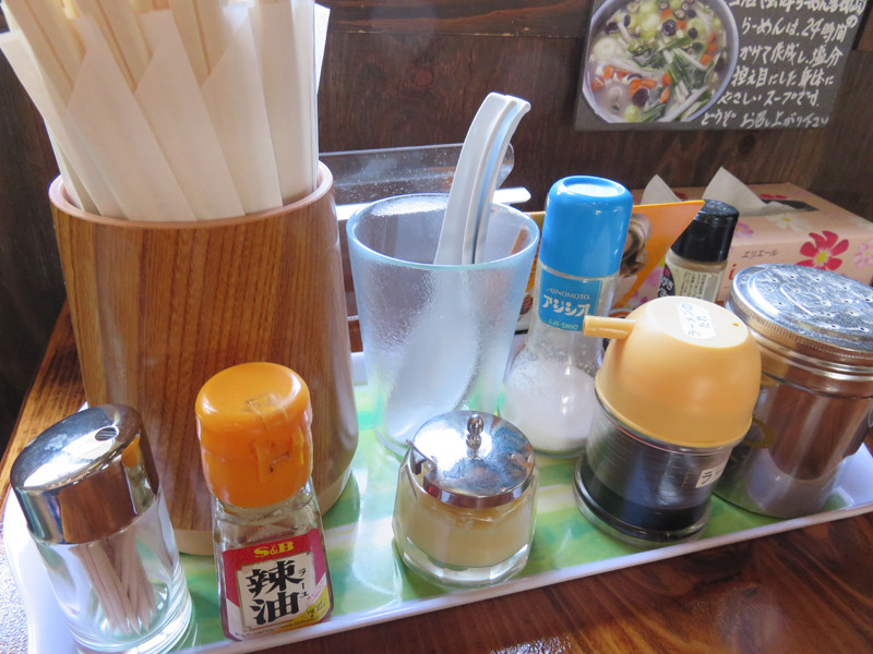 豚骨ラーメン屋ではないので、卓上に紅しょうがや辛子高菜、ゴマはありません。