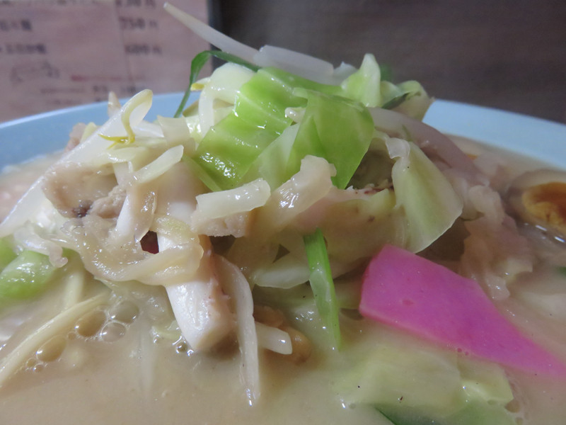 長崎ちゃんぽんにお約束のピンクかまぼこが彩りを添えています。