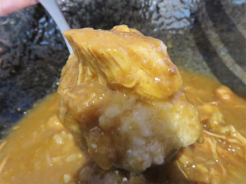 ほぐれるまで柔らかく煮込まれたチキンがゴロゴロ入っているチキンカレー。