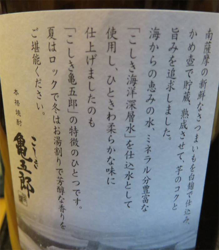 本日キープした焼酎は、鹿児島・吉永酒造の亀五郎。