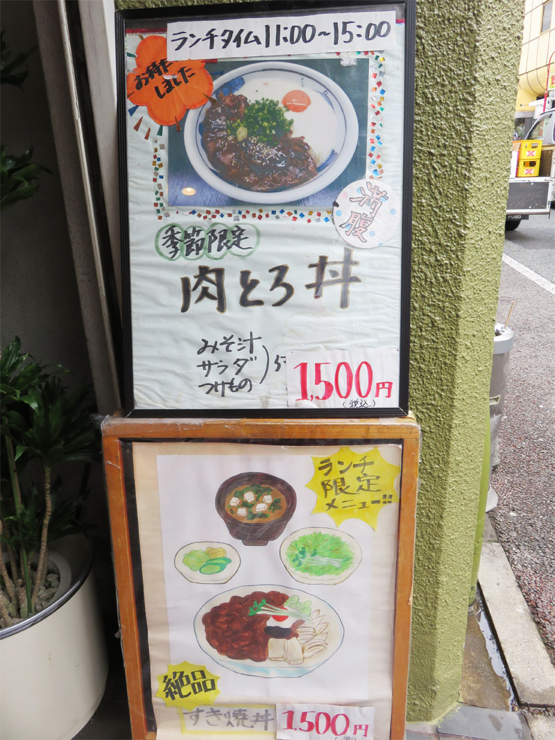 定番のすきやき丼と期間限定の肉とろ丼があります。