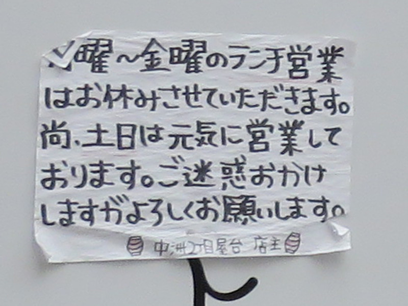 開店直後に入ったら、既に近隣にお勤めの方々と思しき先客がおられ、間もなく満席になりました。
