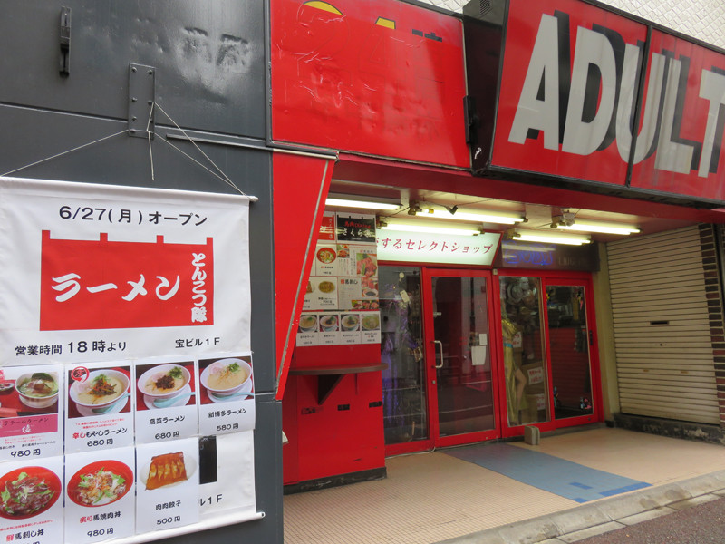 こちらは中洲らしくアダルトショップの隣にあるラーメン屋さん。