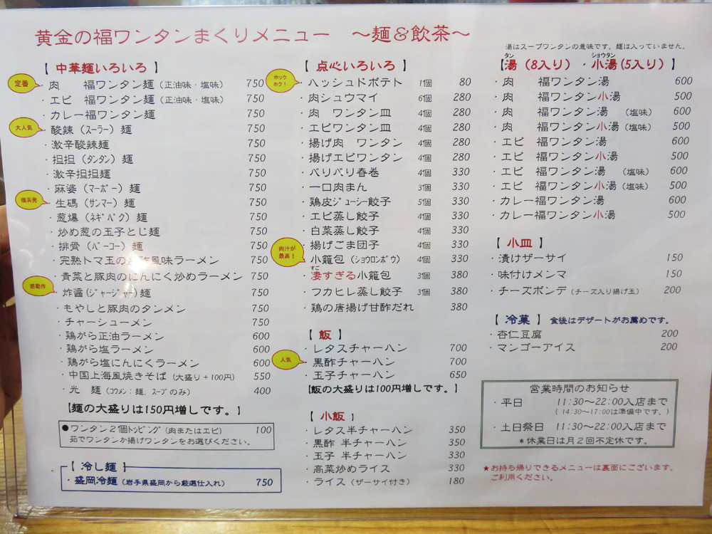 【福岡】点心&麺で飲みまくり♪@黄金の福ワンタン まくり 飯倉本店