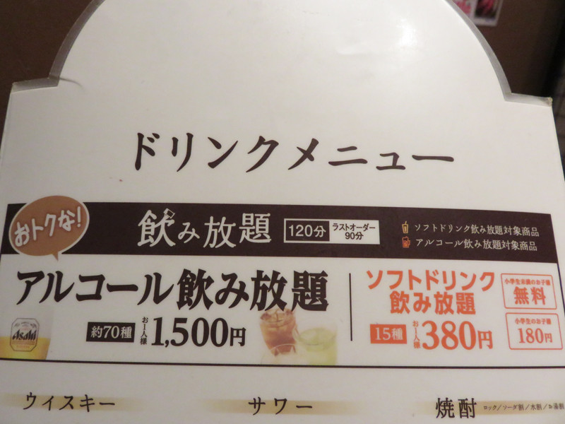 それに、アルコール飲み放題1,500円を追加。