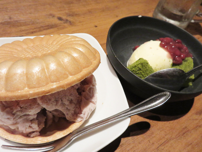 大納言モナカと抹茶わらび餅アイスです。