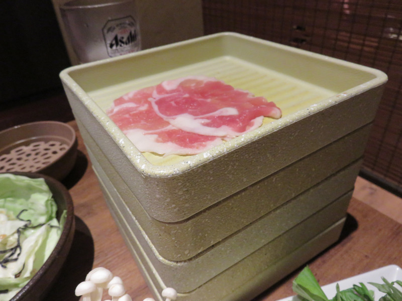 お肉は一皿3枚なので、複数個頼むと、せいろそば or 回転寿司のように皿が積み重ねられてました。