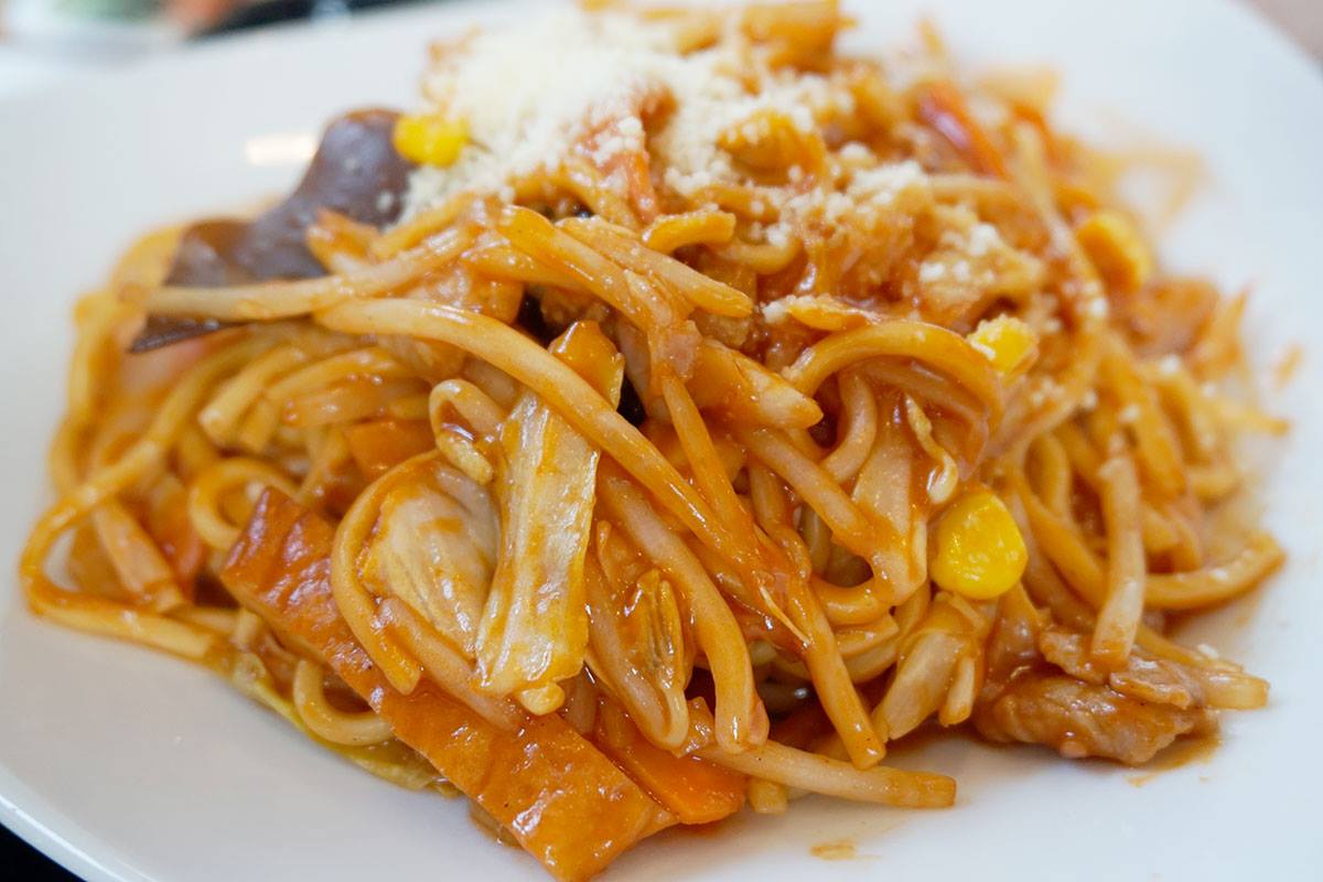 御想像通り、ちゃんぽん麺とナポリタンを合体させたものです。
