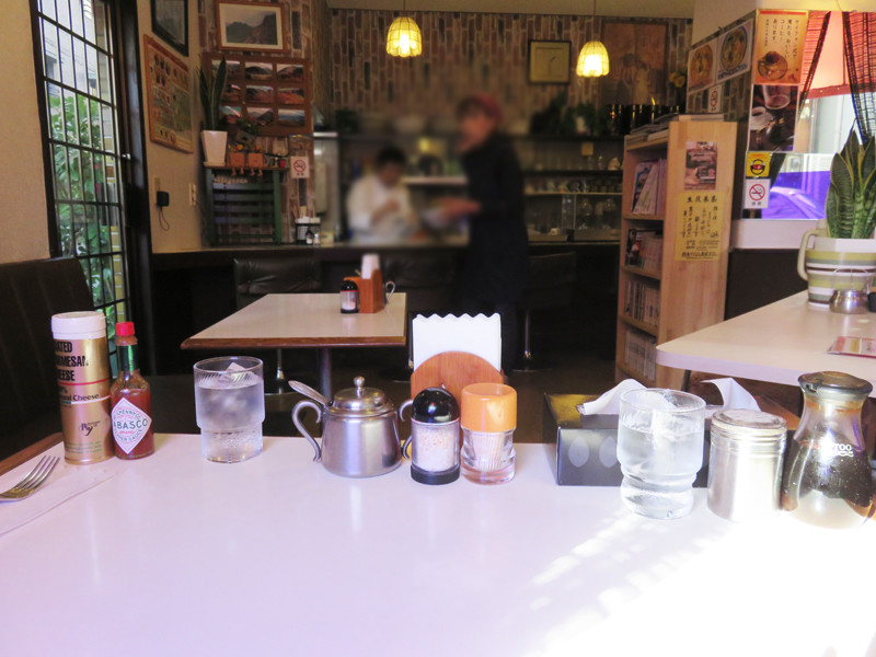 ナポリタン用の粉チーズとタバスコ、チャンポン用のコショウとウスターソースも運ばれてきましたよ。