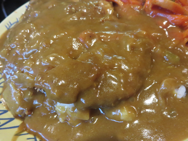 粘度のあるカレー汁を吸った衣は、一層体積を増し、食べ進めていくと胃袋にドッカリ居座ります。