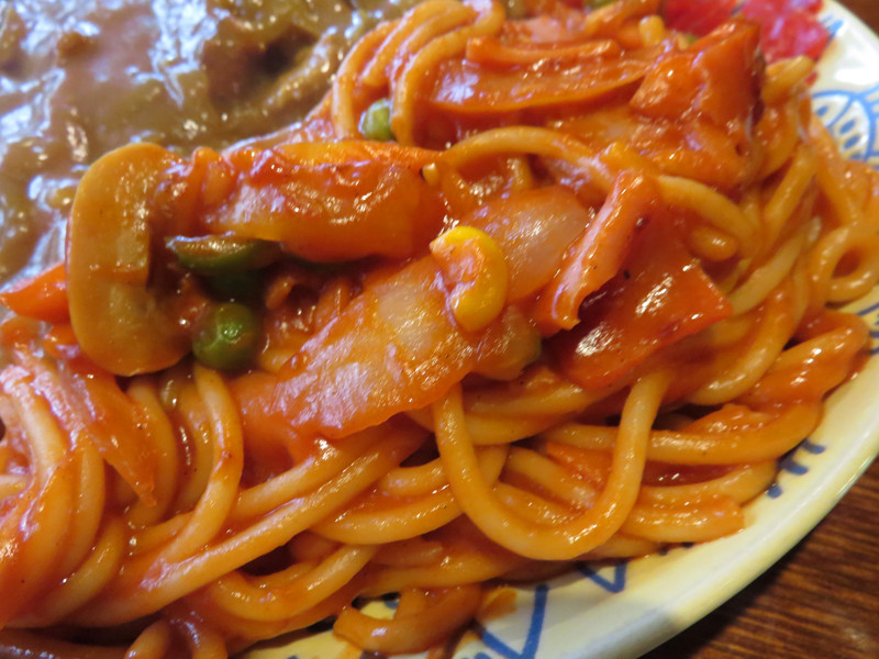 ナポリタンはケチャ汁多めで、「なんだこれは?!」という位の麺のヤワさよ。