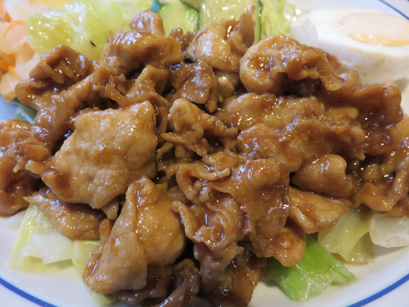 本日のメインは豚薄切り肉のしょうが焼きです。