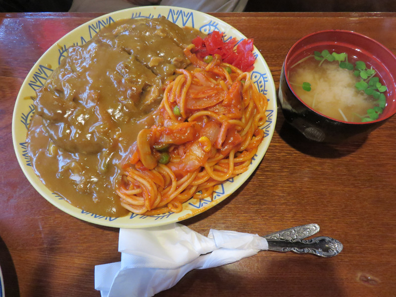 同僚は、この店の人気メニューの『カツカレー&ナポリタン』です。