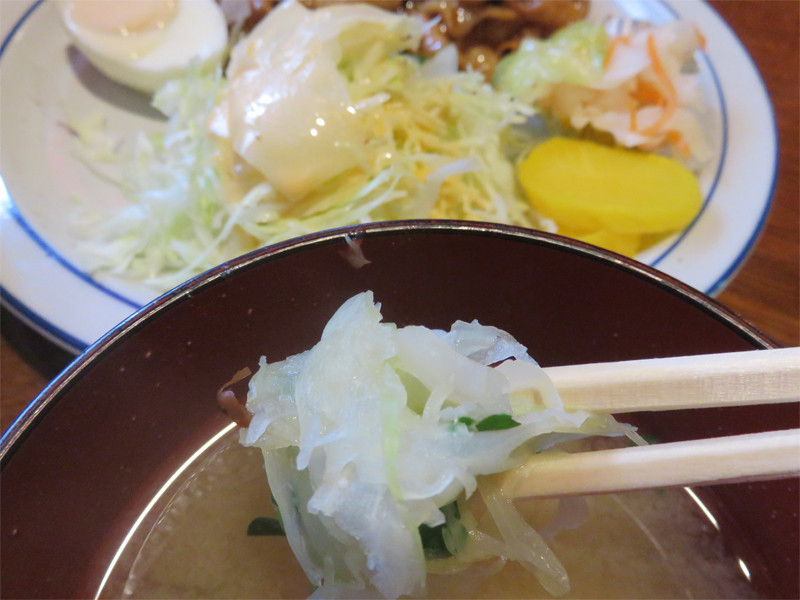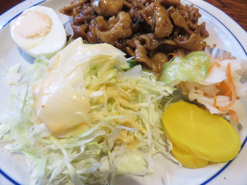 ゆで卵半分・キャベツの千切り・たくあん・大根の酢の物も付いています。