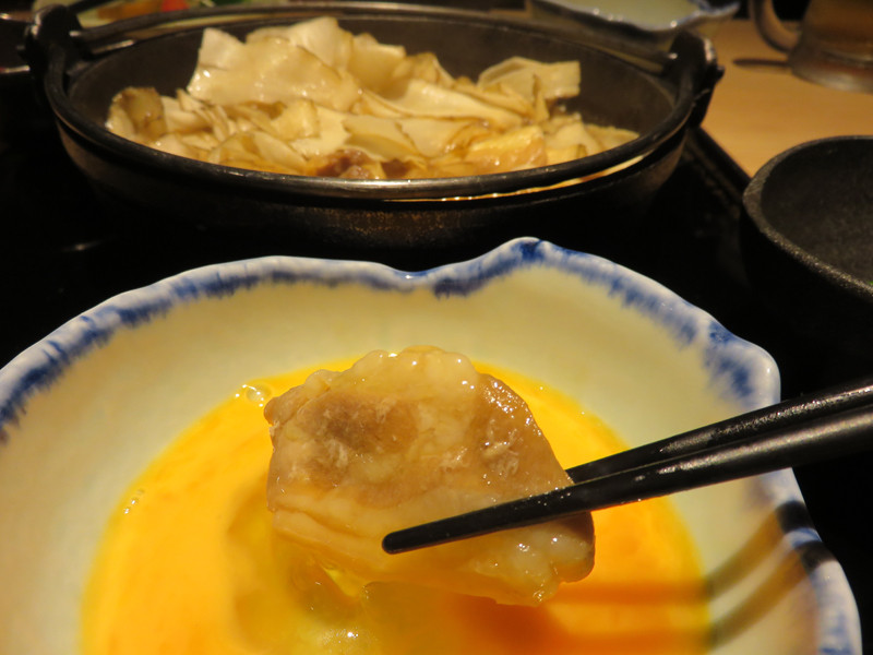 割下に浸かったスライス肉の上には、たっぷりのごぼうスライス。