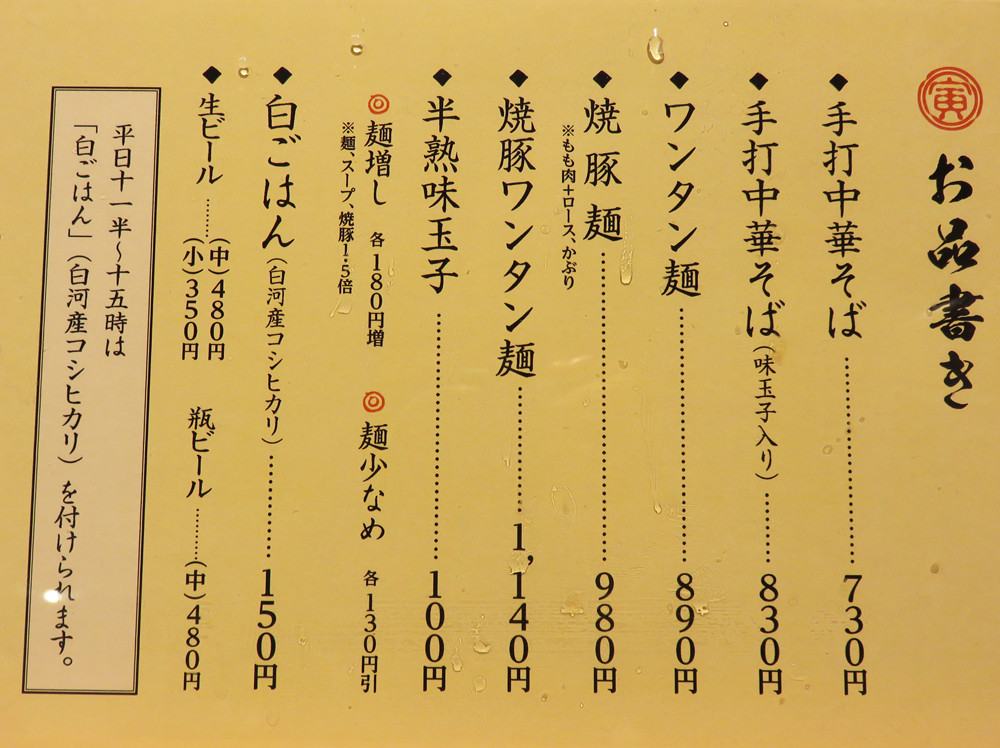 デフォルトは『手打中華そば』730円。
