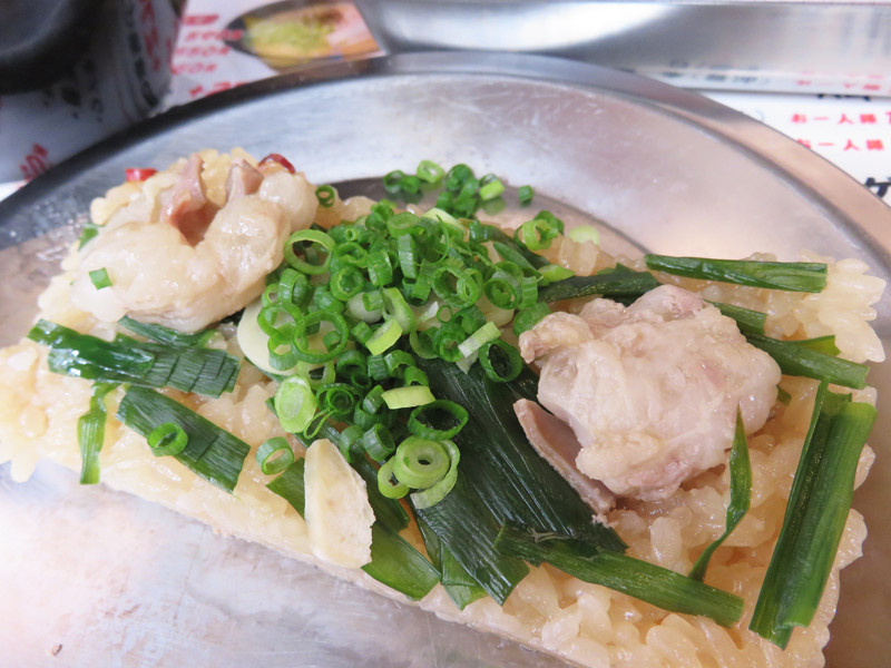 これは、『中洲二丁目屋台』で頂いたモツ鍋味ですが、中華ちまきみたいで美味しかったです。