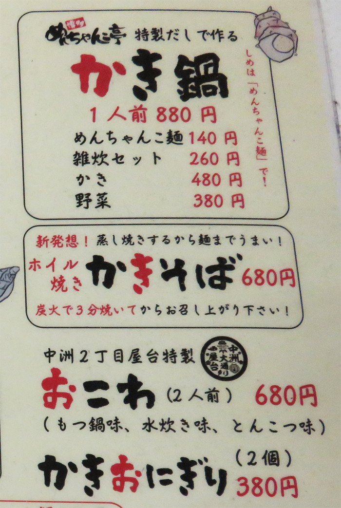 磯貝めんちゃんこのかきごや (炭火焼き / 天神駅、西鉄福岡駅(天神)、天神南駅)