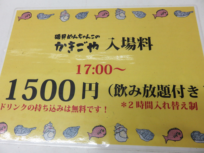 『磯貝めんちゃんこのかきごや』の料金制度ですが、