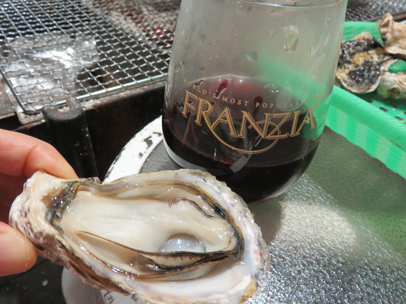 …うーん、ライトテイストな赤ワインで飲みやすいですが、牡蠣にはビミョーに合わない。