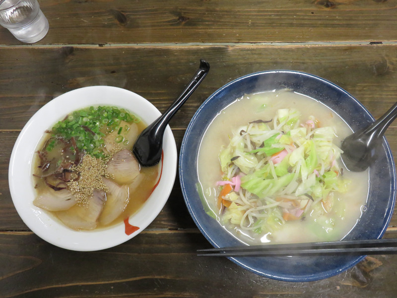 私の野菜特盛チャンポンが大きすぎて、ラーメンが小さく見えますが、量はそこそこあります。