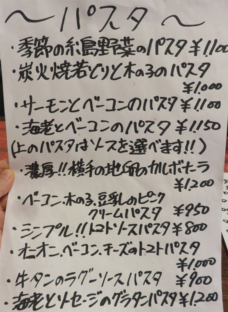 『自家製生パスタと手作りピッツァ!!』と謳ってあるイタリアン店ですが、